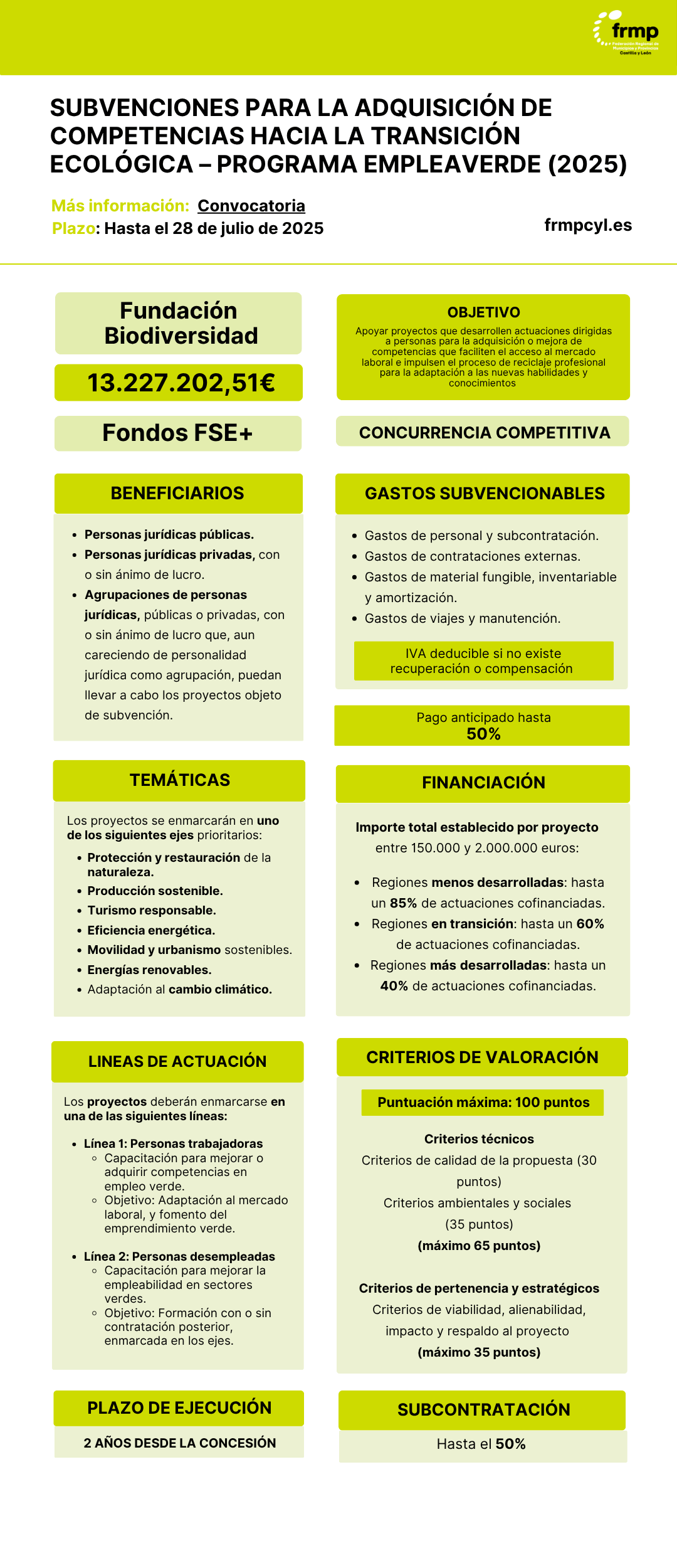 Convocatoria de subvenciones para “la adquisición de competencias hacia la transición ecológica” – Programa Empleaverde (2025)