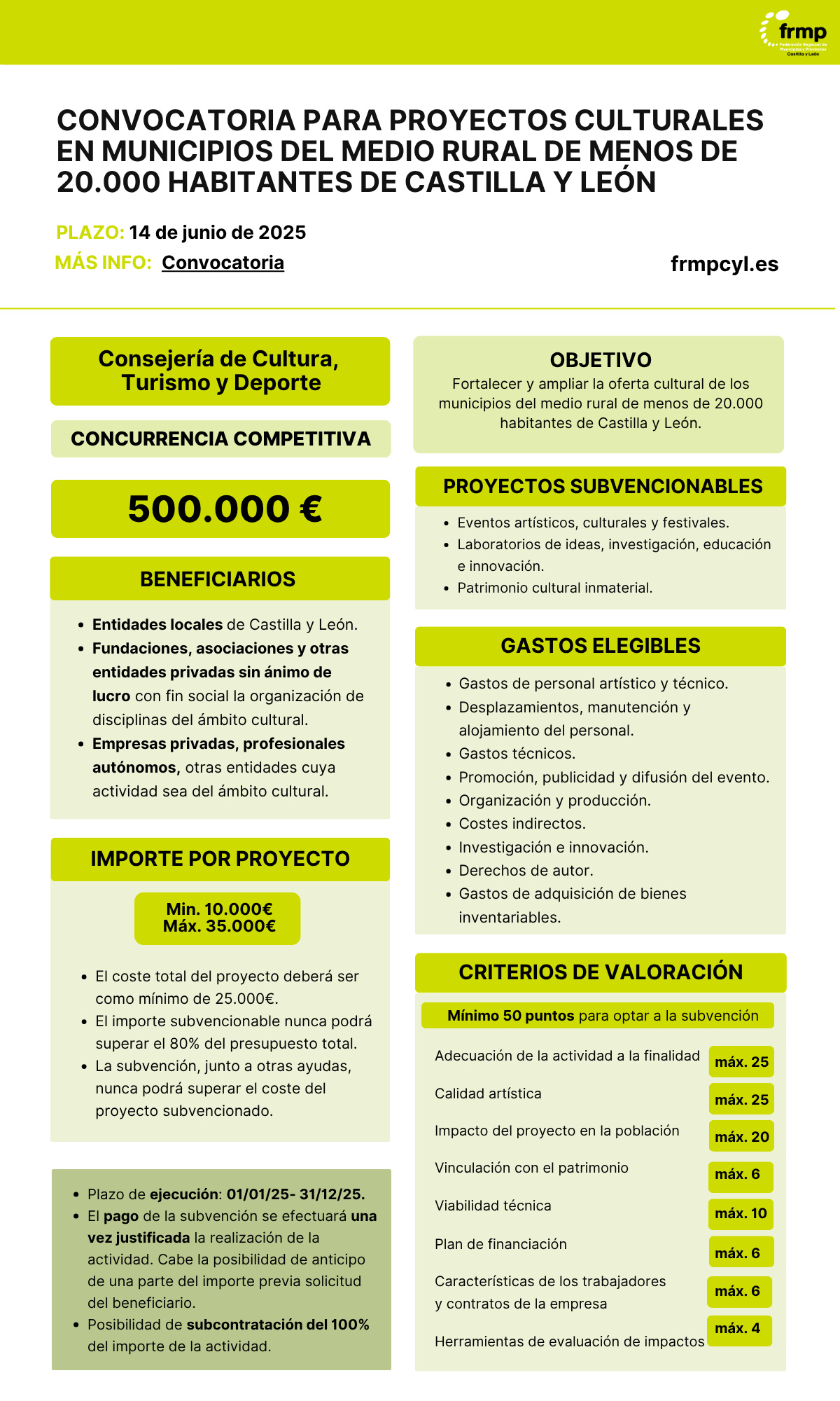 Convocatoria para proyectos culturales en municipios del medio rural de <20.000 habitantes