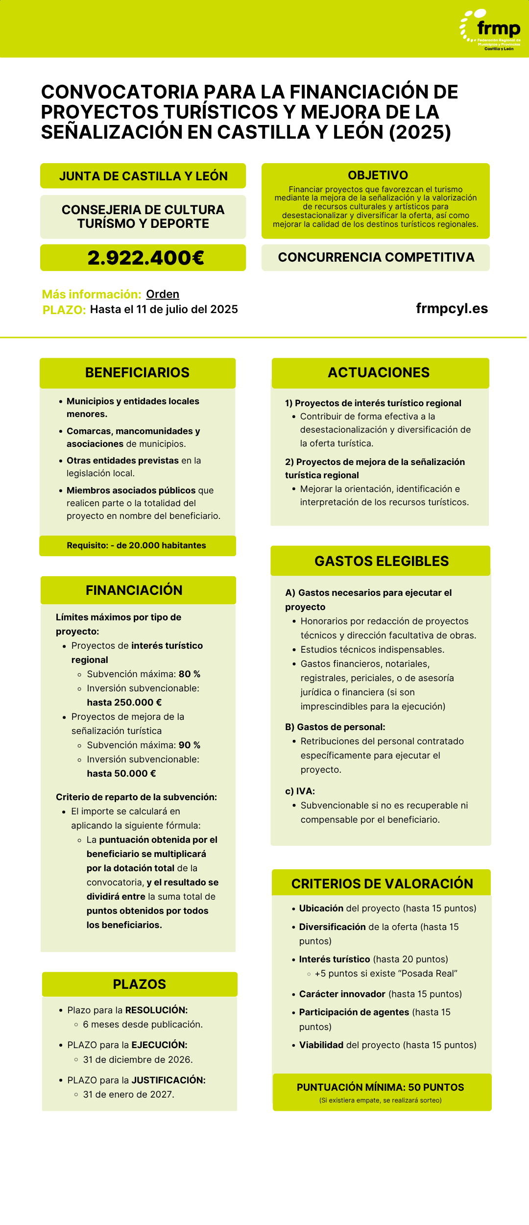Convocatoria de subvenciones para “proyectos turísticos y la mejora de la señalización en Castilla y León”