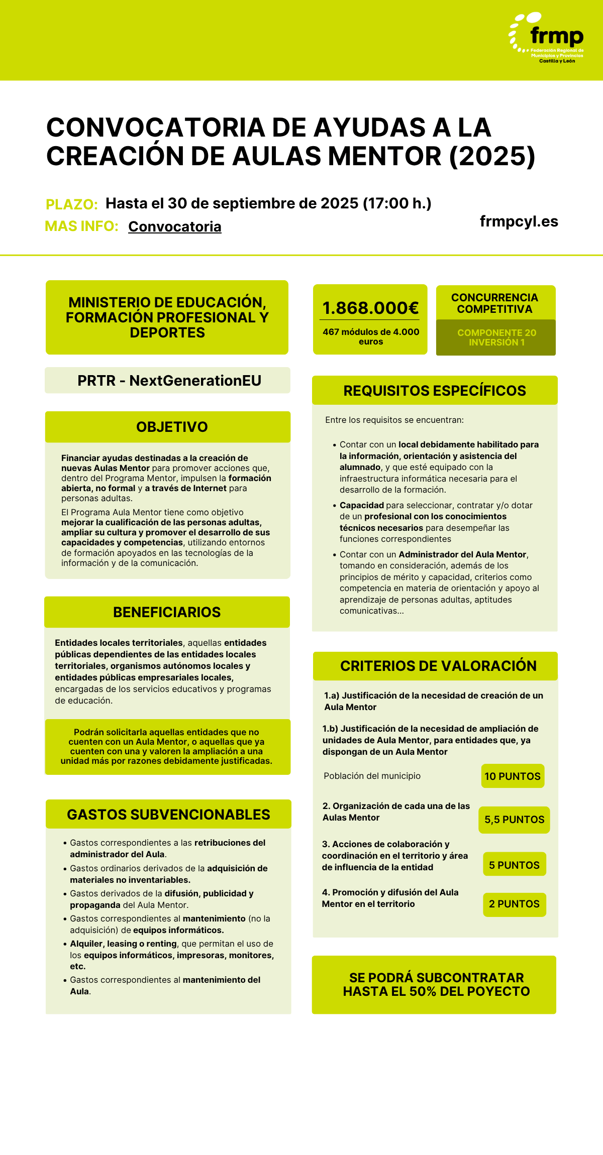 Convocatoria de Ayudas a la Creación de Aulas Mentor y Unidades de Orientación Profesional (2023-1)